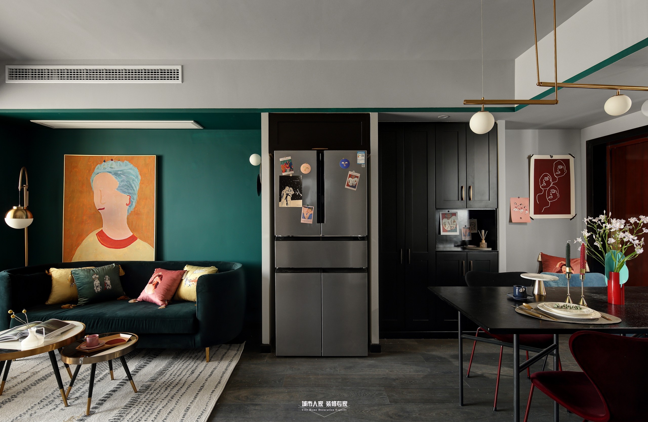 這是一套小戶型,雖然面積不大,但是我們還是為這個小家考慮足夠的收納空間。我們的委托人樹樹和cici是一對年輕人,平時喜歡小酌幾杯,所以我們設(shè)計了開放式的裝飾酒柜,就像cici說的:就算不喝,看著他們也開心!