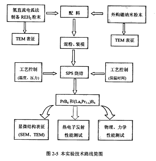 鑒于此,研究者正嘗試?yán)肧PS這種先進(jìn)的燒結(jié)方法來反應(yīng)制備單晶PrB6和(LaxPrl-x)B6多晶塊體陰極,研究其制備工藝、顯微結(jié)構(gòu)及性能,以實現(xiàn)開發(fā)致密度高、發(fā)射性能好的陰極材料之目的。
