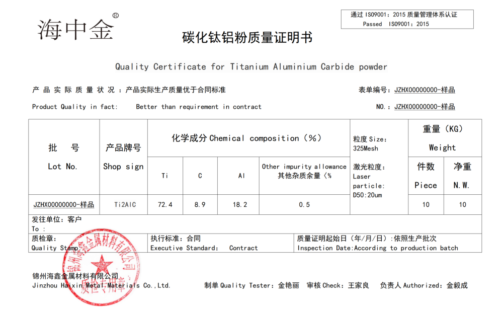 產品名稱:碳化鋁鈦(Ti2AlC)