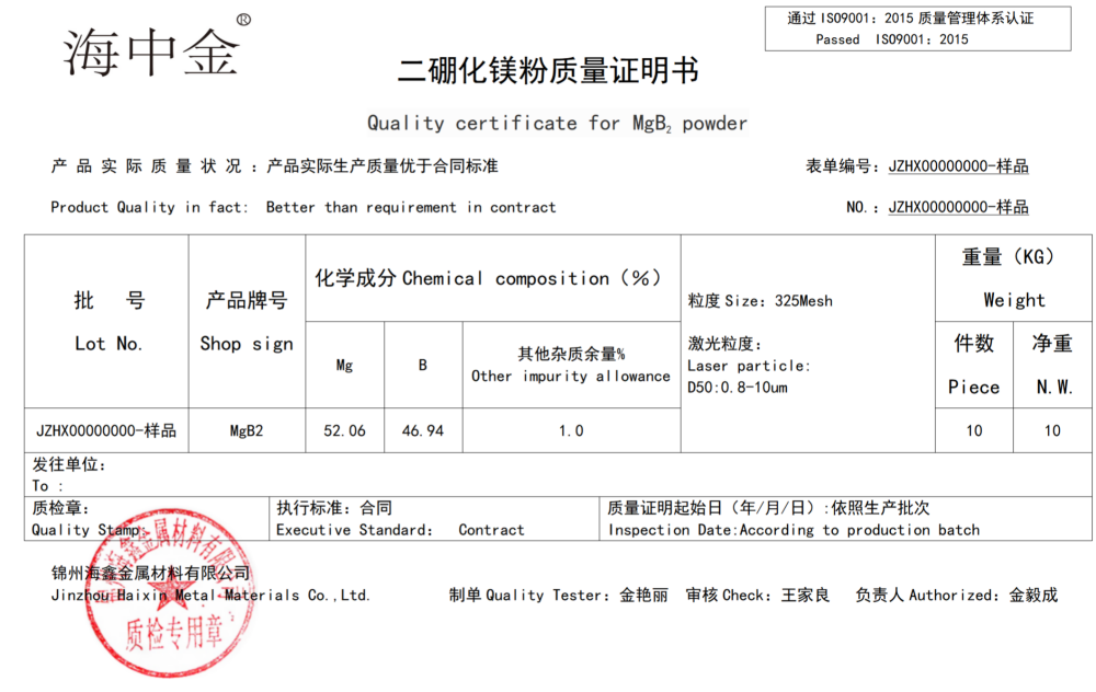 產(chǎn)品名稱:二硼化鎂(MgB2