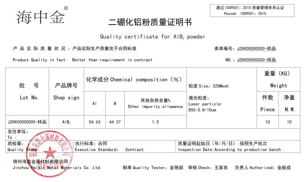 產(chǎn)品名稱:二硼化鋁(AlB2)