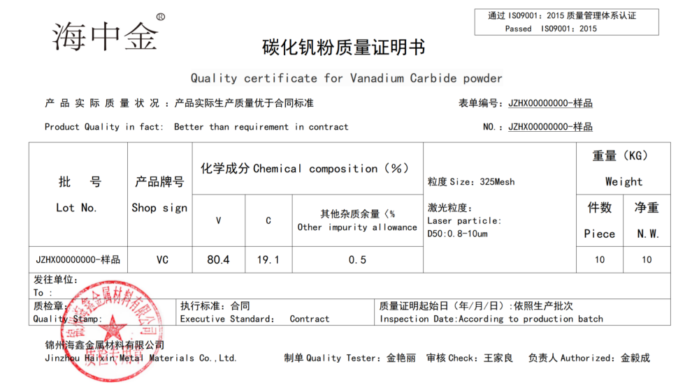 產(chǎn)品名稱:碳化釩(VC)