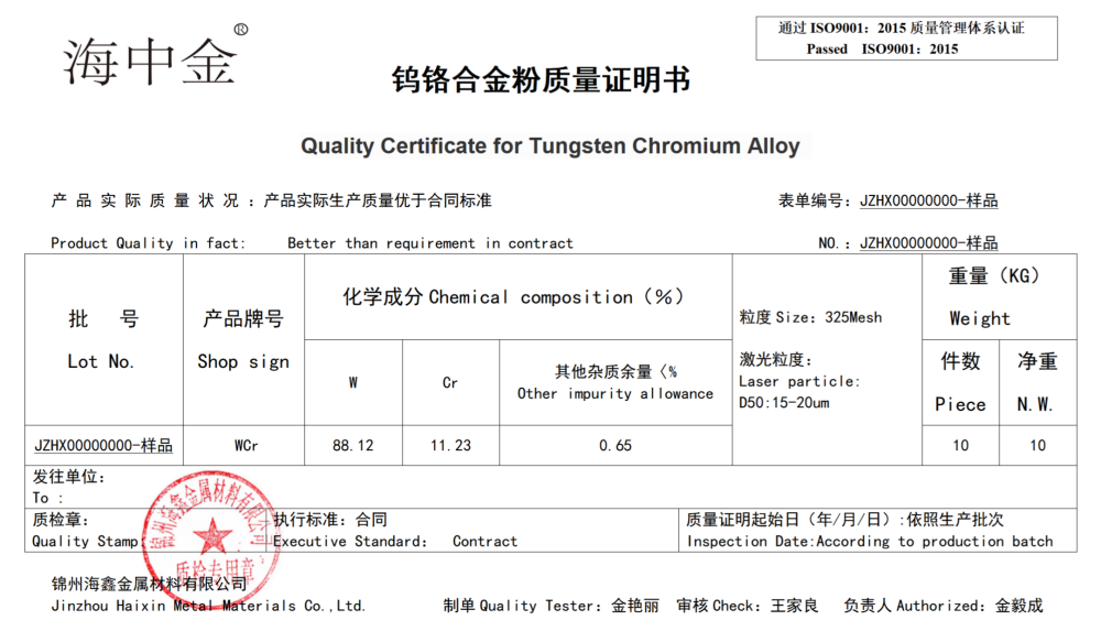 鎢鉻合金力學性能好,應用最廣,主要制造木工工具、冷剪金屬的刀片、鏟搓螺紋板的鏟刀、大型重載冷鐓沖頭、中載鋼板穿孔沖頭、風動工具及精壓模冷沖栽和切邊用模具等。