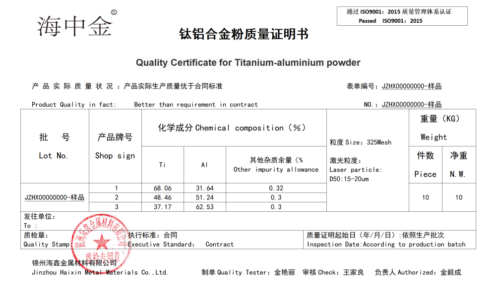 產(chǎn)品名稱:鈦鋁(TiAl)