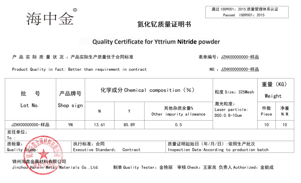 產(chǎn)品名稱:氮化釔(YN)