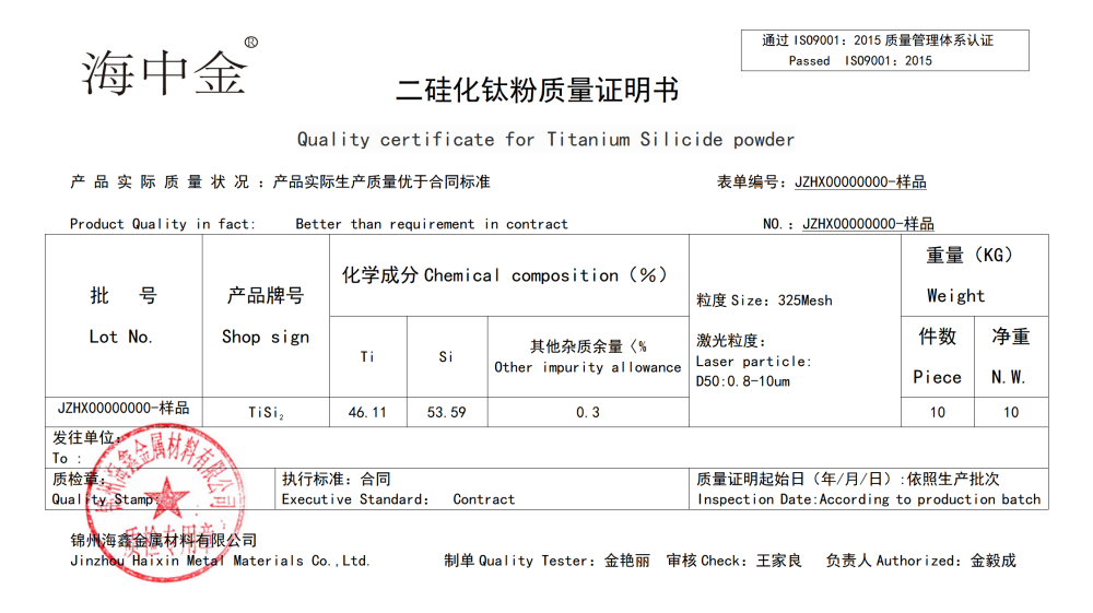 產(chǎn)品名稱:二硅化鈦(TiSi2