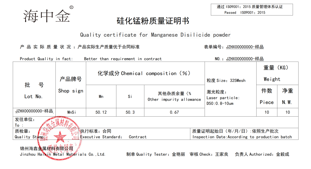 產(chǎn)品名稱:二硅化錳(MnSi2