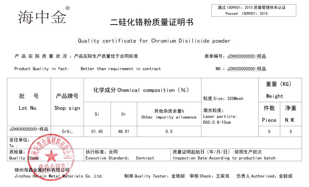 產(chǎn)品名稱:二硅化鉻(CrSi2