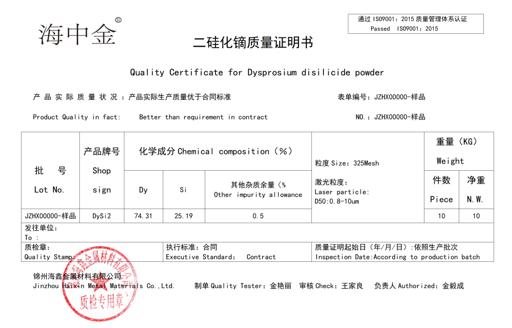 產(chǎn)品展示 當前位置:首頁產(chǎn)品展示—二硅化鏑 Dysprosium disilicide(DySi2)