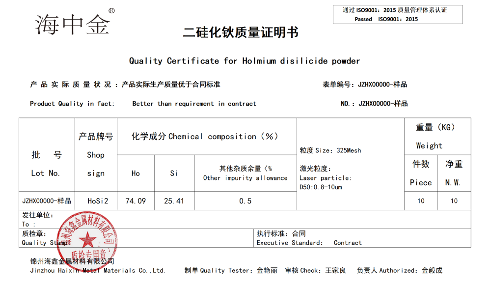 產(chǎn)品名稱:二硅化鈥(HoSi2