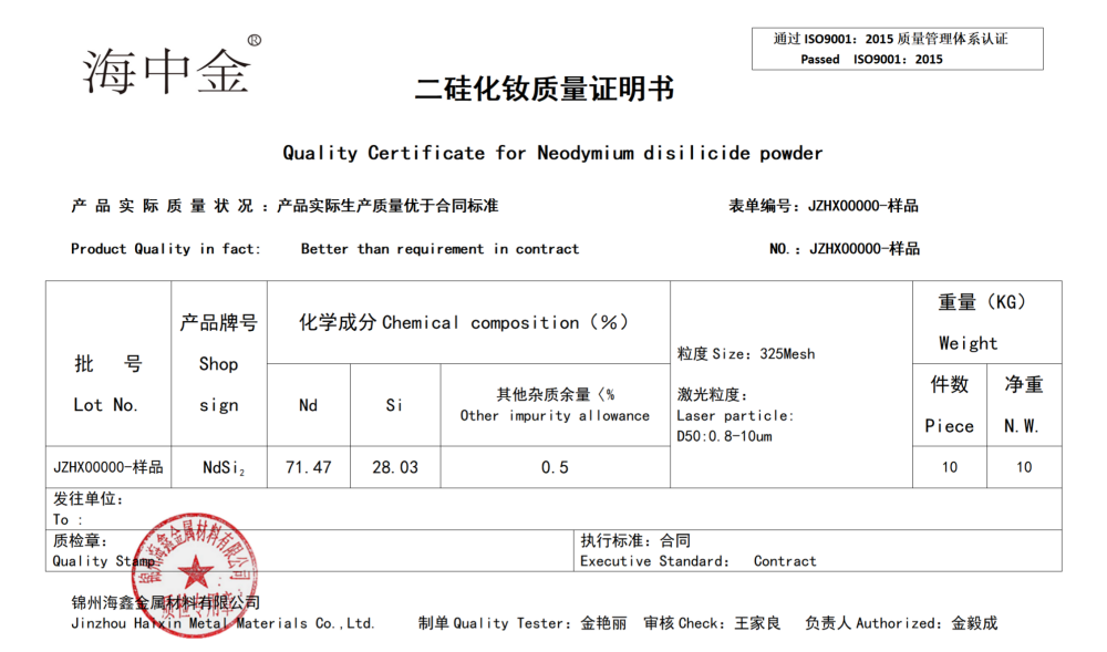 產(chǎn)品名稱:二硅化釹(NdSi2)