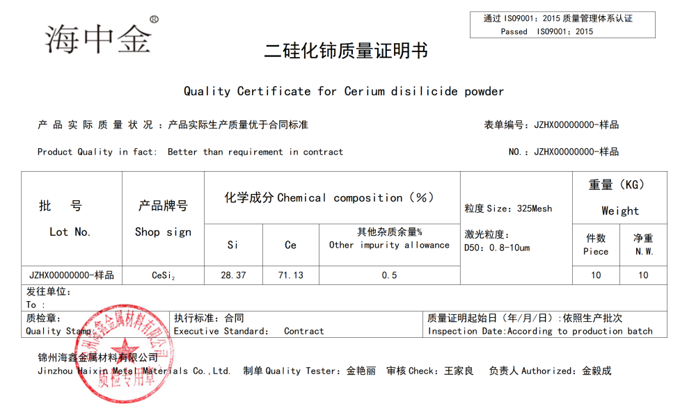 產(chǎn)品名稱(chēng):二硅化鈰(CeSi2)